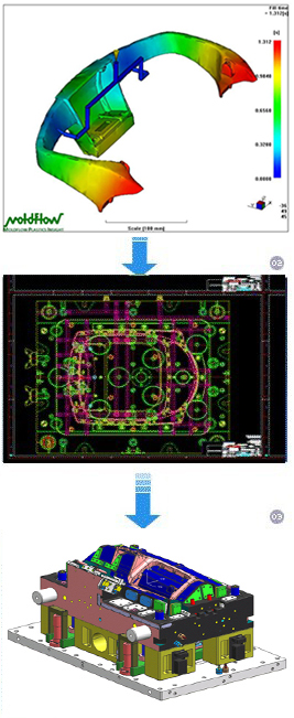 CAE: Our company adopt soft of MOLDFLOW to do injection simulate flow analyzing , educe the optimum project reduce the unplanned of design, greatly shorten manufacture cycle of mold design. |